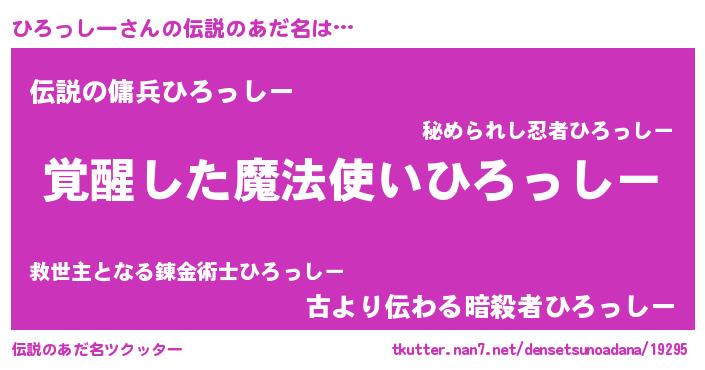 | ヒーロー風カッコイイあだ名 | 『天弓騎士ヒロ』『スーパーヒロッシー』 |