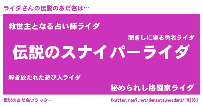 | 男性向けラノベタイトル風あだ名 | 『ライダスレイヤー』『ライダの憂鬱』 |