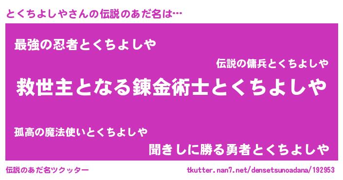 | ヒーロー風カッコイイあだ名 | 『天空の使者とくちよしや』 |