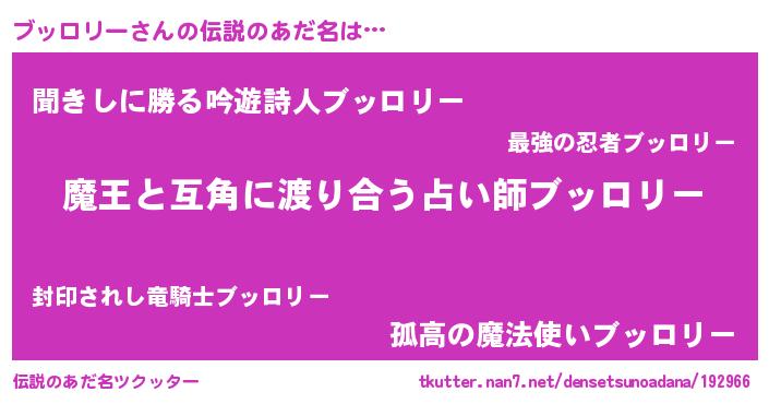 | ヘコむあだ名 | 『ブッロリー(爆)』『ブッを』 |