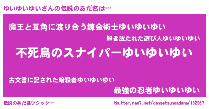 | 意味不明あだ名 | 『自称ゆいゆいゆい』 |