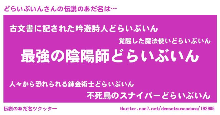| 意味不明あだ名 | 『どらいぶいんフォーエバー』 |