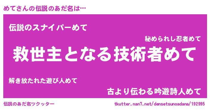 | ヘコむあだ名 | 『めてにー』『めて(苦笑)』 |