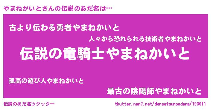 | ヘコむあだ名 | 『やまにー』『やまねかいと(遠い目)』 |