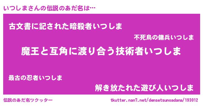 | 意味不明あだ名 | 『自称いつしま』『永久保存いつしま』 |