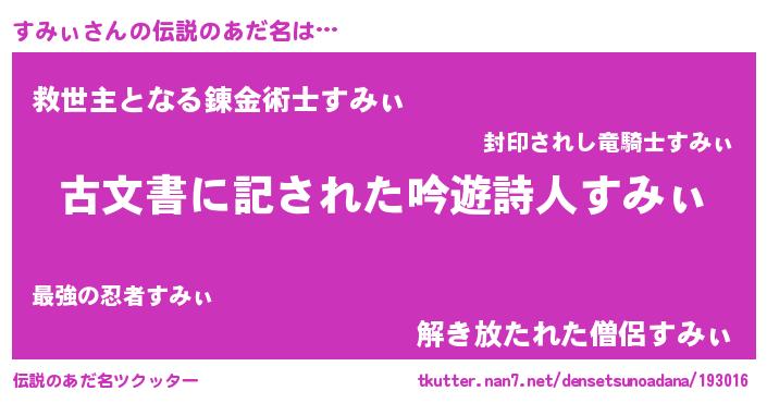 | 意味不明あだ名 | 『自称すみぃ』『永久保存すみぃ』 |