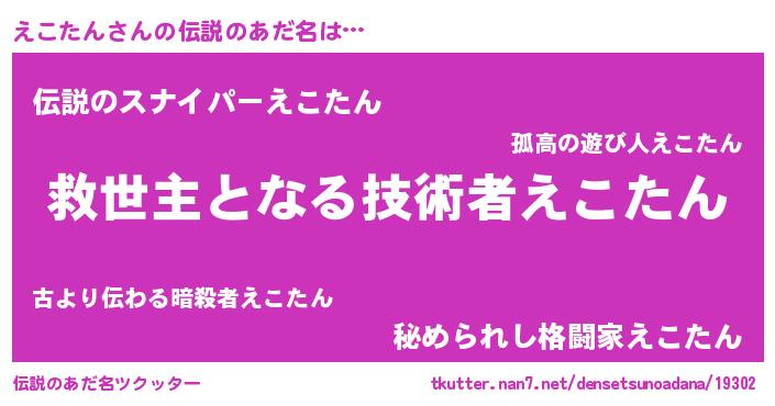 | ヒーロー風カッコイイあだ名 | 『天空の使者えこたん』『仮面エコダー』 |