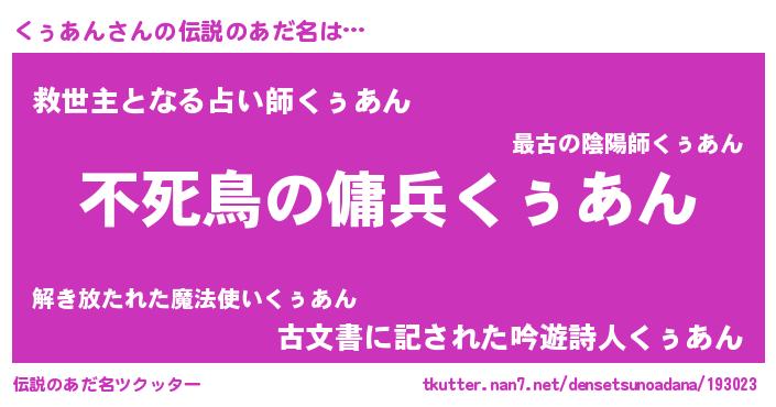 | ヘコむあだ名 | 『くぅにゅー』『くぅあん(遠い目)』 |