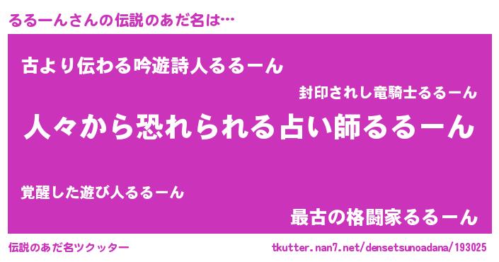 | 男性向けラノベタイトル風あだ名 | 『緋弾のルルーン』 |