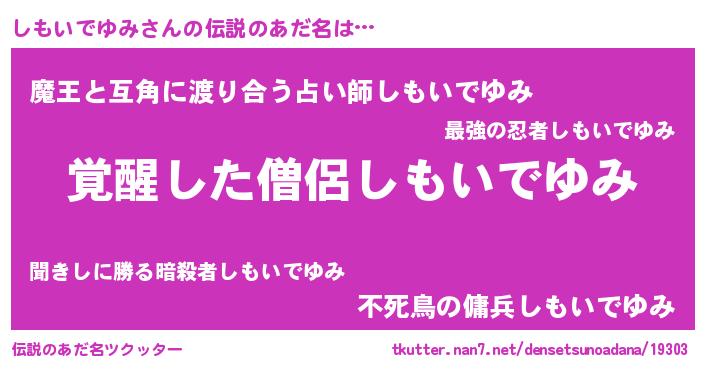 | 意味不明あだ名 | 『とにかく怪しいしもいでゆみ』 |