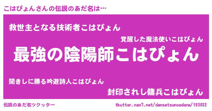 | ヒーロー風カッコイイあだ名 | 『ウルトラこはぴょんマン』 |
