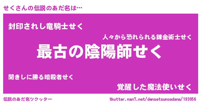 | ファンタジー風あだ名 | 『エターナルセクー』『ゼセクトゥ』 |