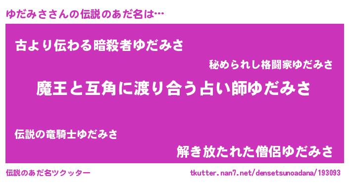 | 女子向けラノベタイトル風あだ名 | 『ゆだみさ恋絵巻』『ゆだみさの契約王妃』 |