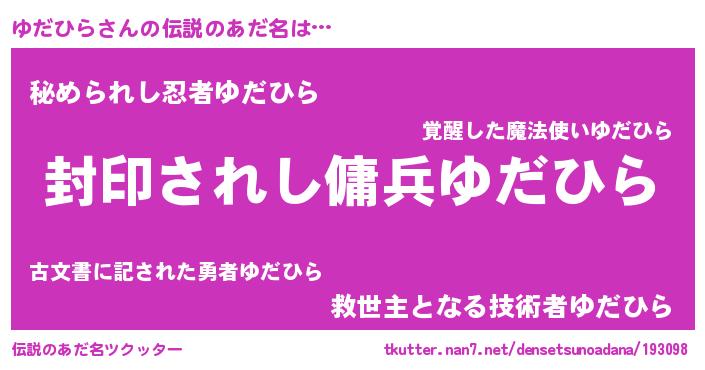 | 肩書あだ名 | 『ゆだひら大尉』『ゆだひらCEO』 |