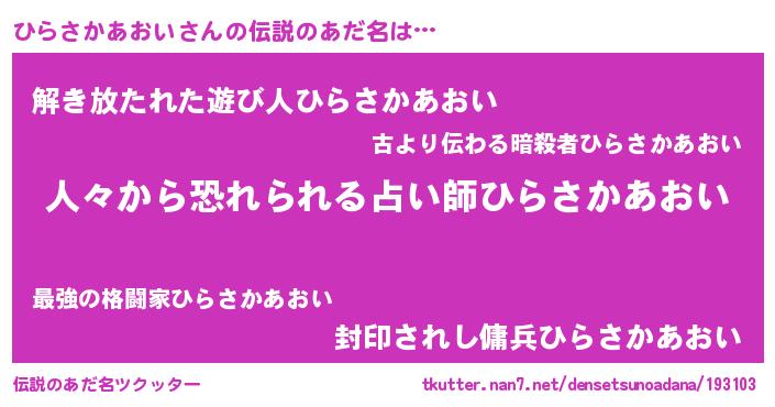 | 男性向けラノベタイトル風あだ名 | 『ヒラサカアオイスレイヤー』 |