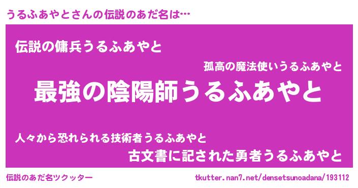 | 意味不明あだ名 | 『うるふあやとフォーエバー』 |