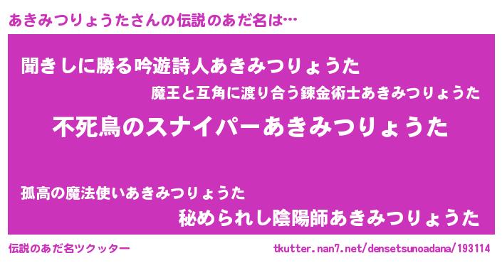 | ヒーロー風カッコイイあだ名 | 『スーパーアキミツリョウタ』 |