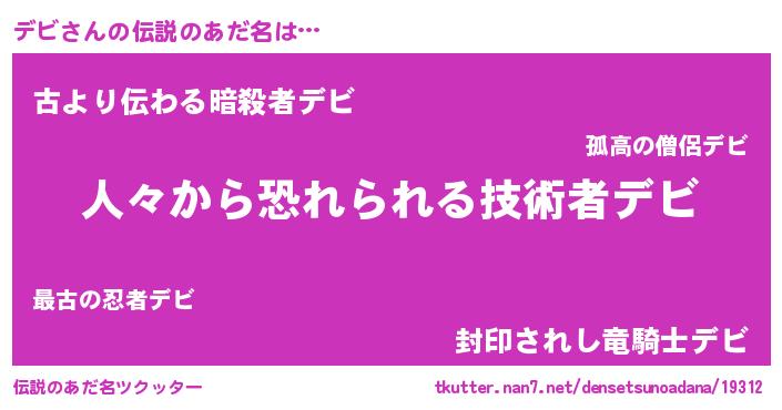 | ヒーロー風カッコイイあだ名 | 『正義の使者デビ』『サイバー戦士デビ』 |