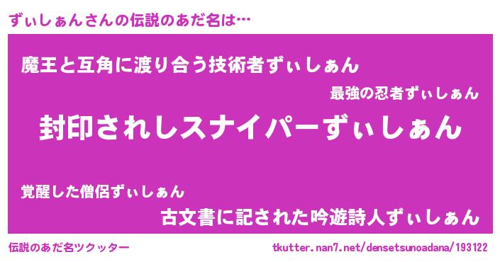 | 意味不明あだ名 | 『ペロリンずぃしぁん』『自称ずぃしぁん』 |