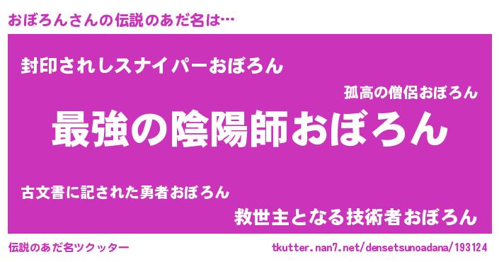 | ヒーロー風カッコイイあだ名 | 『ウルトラおぼろんマン』『仮面オボダー』 |