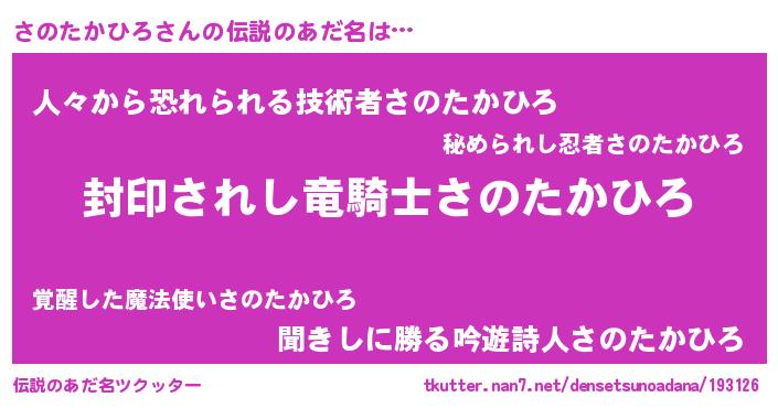 | ヘコむあだ名 | 『さのにー』『さのたかひろ(笑)』 |