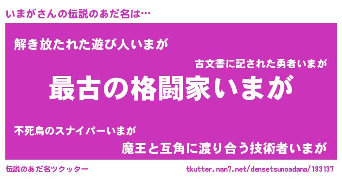 | 意味不明あだ名 | 『自称いまが』『いまがフォーエバー』 |