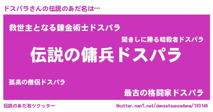 | ヒーロー風カッコイイあだ名 | 『スーパードスパラ』『最強戦士ドスパラ』 |