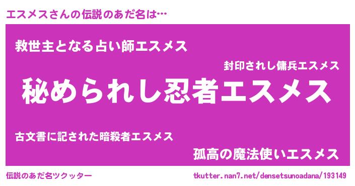 | 意味不明あだ名 | 『自称エスメス』『めかぶ科エスメス属』 |