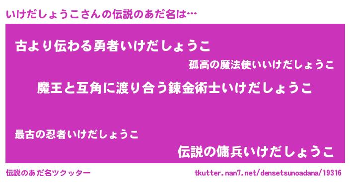 | 意味不明あだ名 | 『自称いけだしょうこ』 |