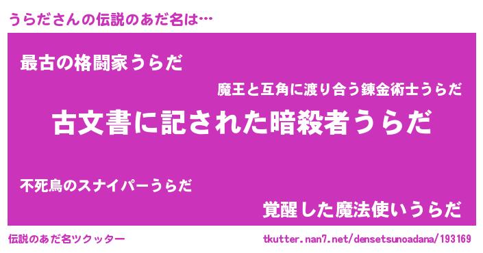 | 意味不明あだ名 | 『自称うらだ』『永久保存うらだ』 |