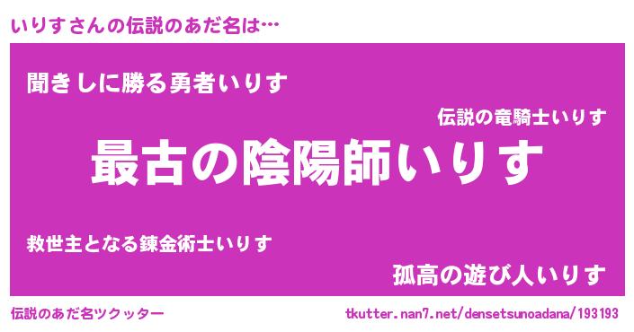 | 意味不明あだ名 | 『住所不定無職いりす(84歳)』 |