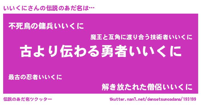 | 意味不明あだ名 | 『住所不定無職いいくに(81歳)』 |