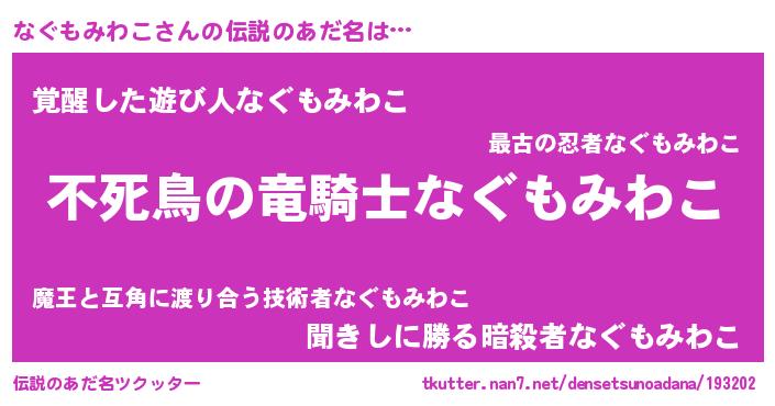 | 女子向けラノベタイトル風あだ名 | 『なぐもみわこ姫と円卓の騎士』 |