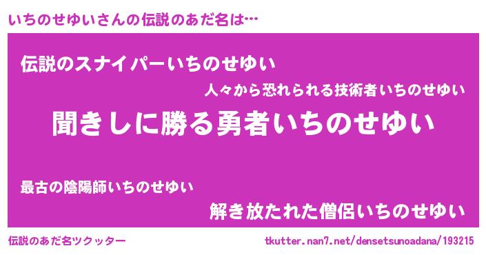 | ヒーロー風カッコイイあだ名 | 『仮面イチダー』『ネオイチノセユイ』 |