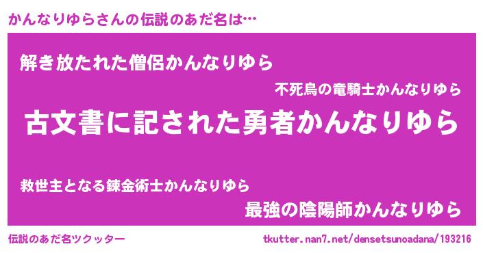 | 意味不明あだ名 | 『永久保存かんなりゆら』 |