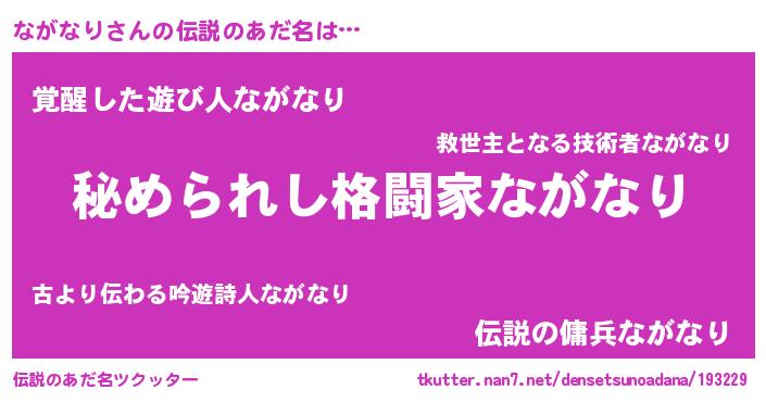 | ヒーロー風カッコイイあだ名 | 『ウルトラながなりマン』『仮面ナガダー』 |