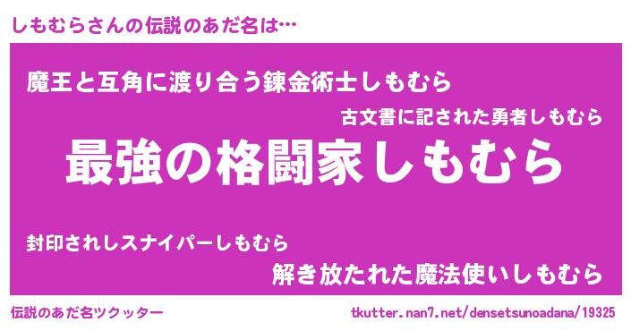 | 意味不明あだ名 | 『しもむらフォーエバー』『自称しもむら』 |