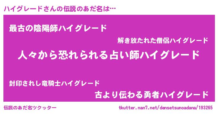 | ヒーロー風カッコイイあだ名 | 『友情の使者ハイグレード』 |