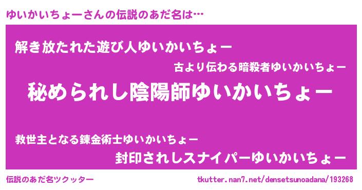| 男性向けラノベタイトル風あだ名 | 『ユイカイチョースレイヤー』 |