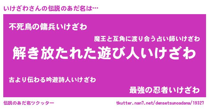 | 意味不明あだ名 | 『住所不定無職いけざわ(98歳)』 |