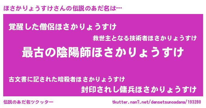 | 男性向けラノベタイトル風あだ名 | 『転生したらほさかりょうすけだった件』 |