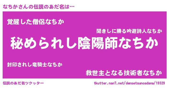 | ヒーロー風カッコイイあだ名 | 『ウルトラなちかマン』『暗黒騎士ナチ』 |