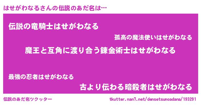 | ヒーロー風カッコイイあだ名 | 『愛の使者はせがわなる』『黄金騎士ハセ』 |