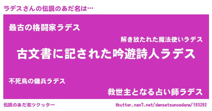 | ヒーロー風カッコイイあだ名 | 『ネオラデス』『ウルトララデスマン』 |
