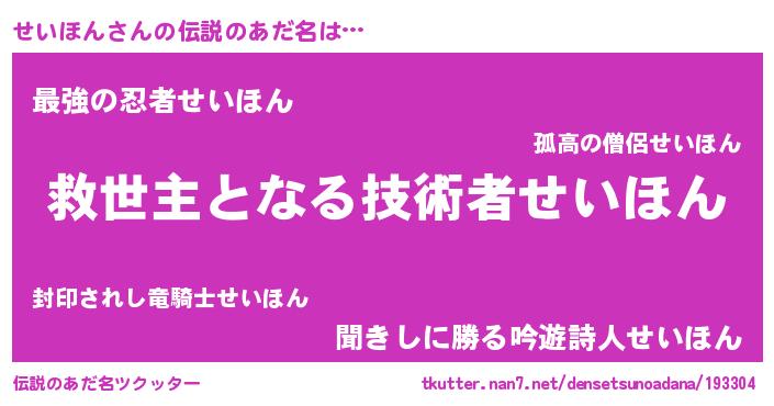 | ヒーロー風カッコイイあだ名 | 『慈愛の使者せいほん』『仮面セイダー』 |
