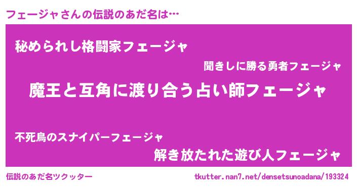 | 女子向けラノベタイトル風あだ名 | 『フェージャ恋絵巻』『闇のフェージャ』 |