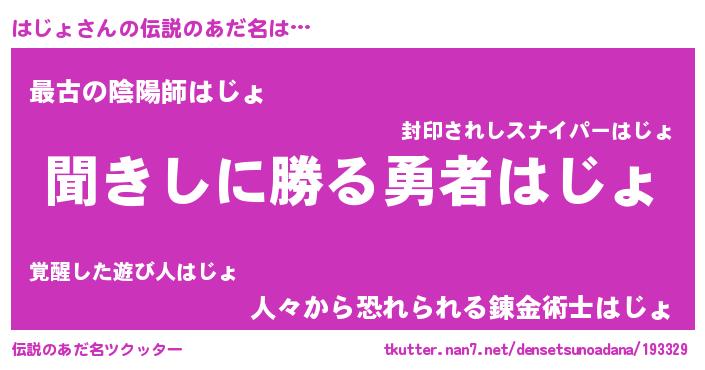 | ヒーロー風カッコイイあだ名 | 『ネオハジョ』『ウルトラはじょマン』 |