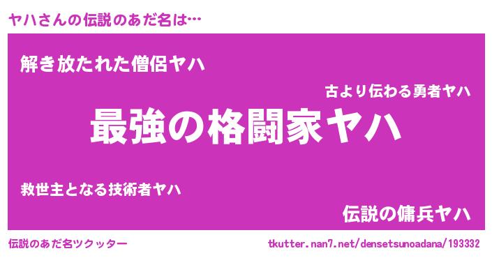 | ヒーロー風カッコイイあだ名 | 『ウルトラヤハマン』『超時空戦士ヤハ』 |