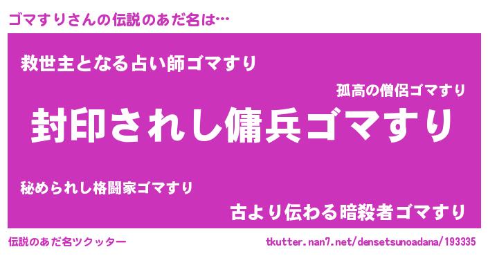 | ヒーロー風カッコイイあだ名 | 『究極戦士ゴマスリ』『スーパーゴマスリ』 |