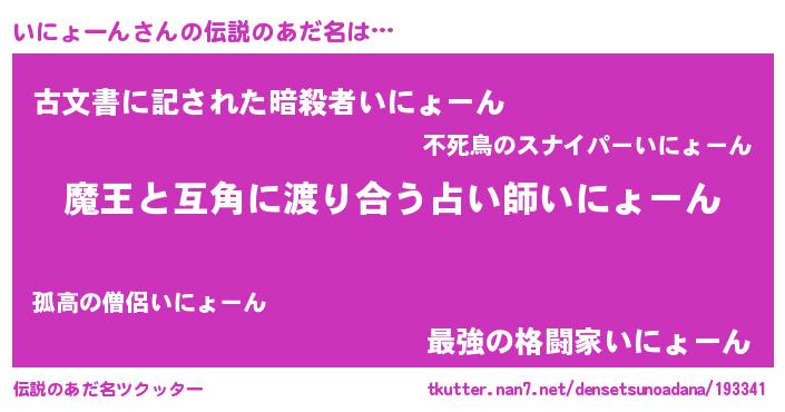 | ヒーロー風カッコイイあだ名 | 『愛の使者いにょーん』『ネオイニョーン』 |